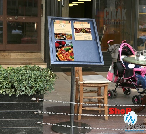 Plakátok, táblák, nyomtatványok esztétikus kihelyezésére alkalmas térben álló állványok